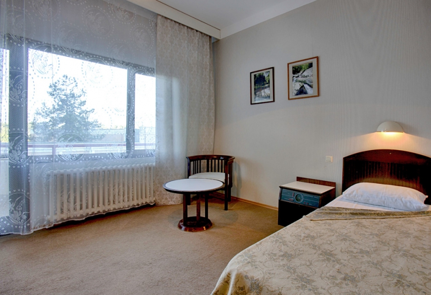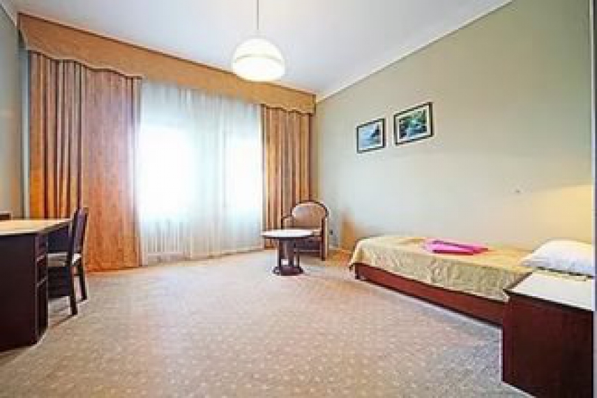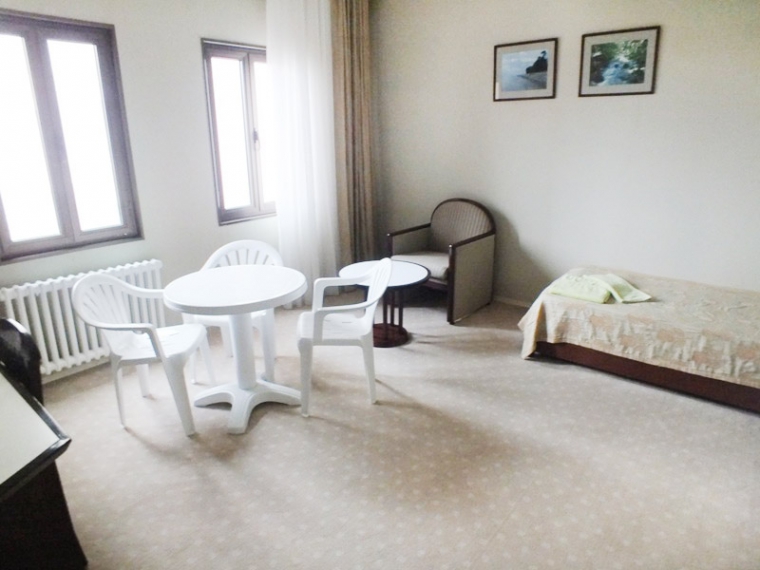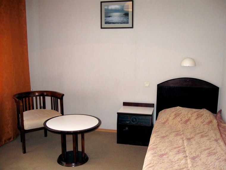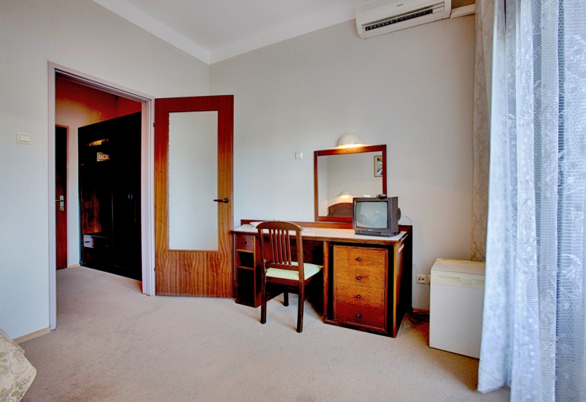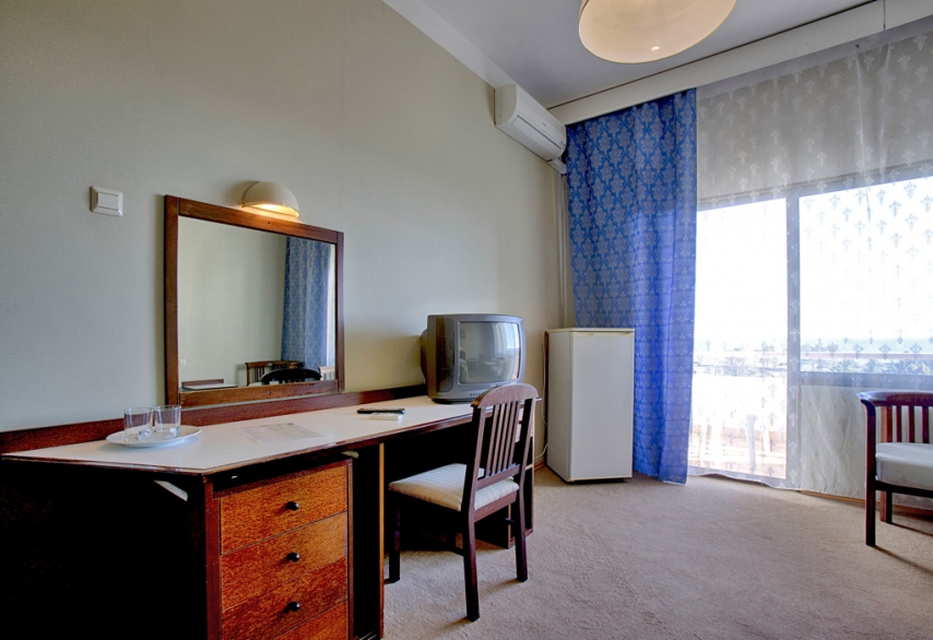 В номере: односпальная кровать, прикроватная тумбочка, шкаф, туалетный столик, стул, журнальный столик, два кресла (не раскладываются), кондиционер, телевизор, холодильник, сейф, Wi-Fi.