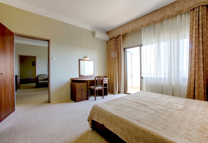 Площадь – 70 кв.м. Осн. место – 3, доп. место – 2. Есть два балкона или лоджии с мебелью, вид на море. Состоит из спальни, двух гостевых комнат, двух санузлов.